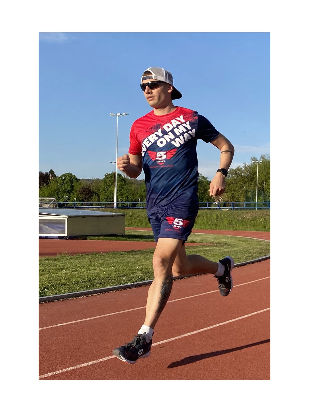 Pánské funkční tričko s motivem EVERY DAY ON MY WAY v modro-červené barvě. Tričko je vyrobeno z kvalitní prodyšné funkční látky, dobře odvádí pot a je rychleschnoucí.