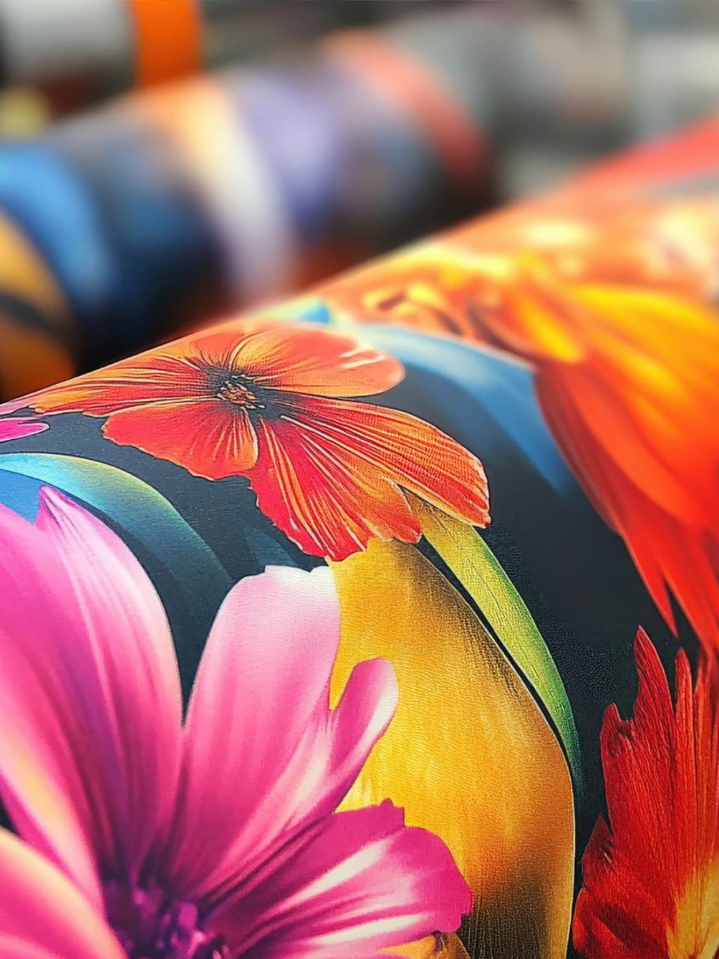 Tiskneme živé, sytě barevné motivy včetně fluorescenčních barev. Grafiku dodáváte vy – pracujeme s vašimi tiskovými daty. Pokud chcete mít jistotu, jak bude motiv vypadat na látce, nabízíme barevný nátisk před zahájením hlavního tisku.